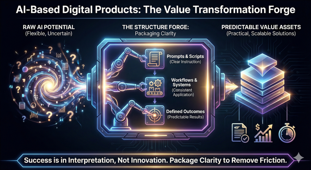 AI-based digital products succeed because they solve a practical problem that access to AI alone does not. While tools continue to improve, the difficulty of applying them consistently remains. Prompts, scripts, and systems bridge that gap by turning flexible technology into predictable outcomes.