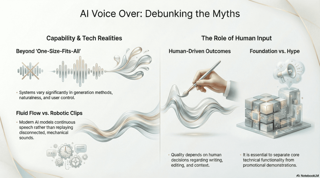 Finally, discussions about AI voice over often blend explanation with promotion. Examples and demonstrations may emphasize possibilities without clearly separating foundational understanding from evaluation or comparison. Recognizing this distinction helps keep learning about the category grounded and accurate.
