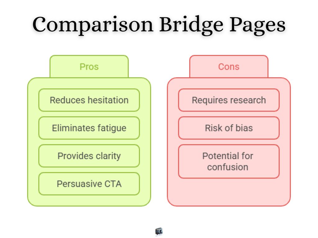 Comparison bridge pages win attention by stacking the promoted offer against alternatives. Benefits, features, or pricing are laid out side by side, with your recommendation positioned as the winner.