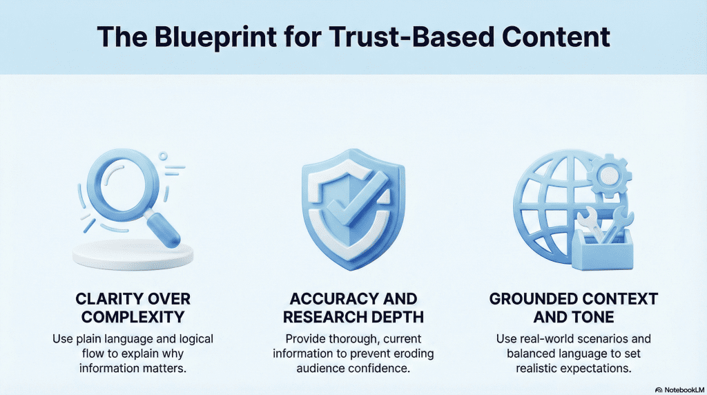 Tone completes the picture. Balanced language, acknowledgment of trade-offs, and transparent sourcing set realistic expectations. When readers know what content can and cannot do for them, trust grows naturally.
