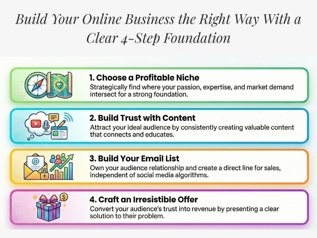 - Content-based products like ebooks and mini-courses build long-term authority.