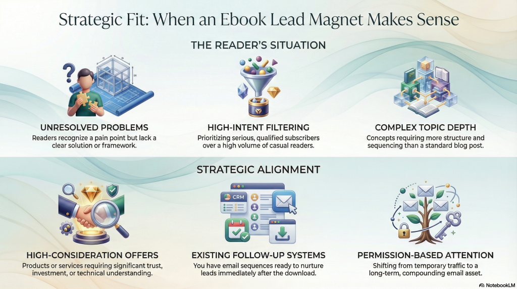 An ebook lead magnet is a strong tool, but it is not always the right one. It works best in specific situations where clarity, trust, and education drive decisions.
