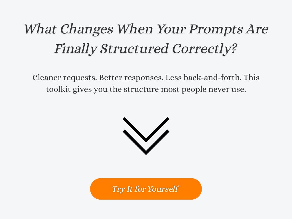 This is why results often feel inconsistent rather than incorrect. The AI is responding logically to incomplete direction, not making mistakes. Without structure, the prompt leaves too much room for interpretation, which leads to generic answers or misaligned outputs. A structured approach removes that uncertainty before the response is generated.