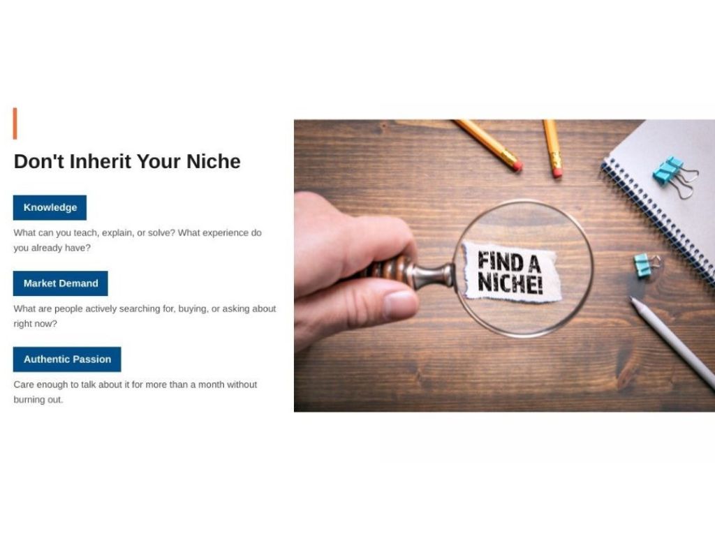 When those three overlap, you don’t just choose a niche, you claim a space where your credibility, curiosity, and customer needs all meet.