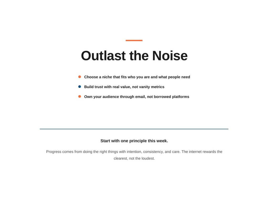Progress online rarely comes from doing more. It comes from doing the right things with intention, consistency, and care. You don’t need to out-hustle anyone. You just need to outlast the noise.