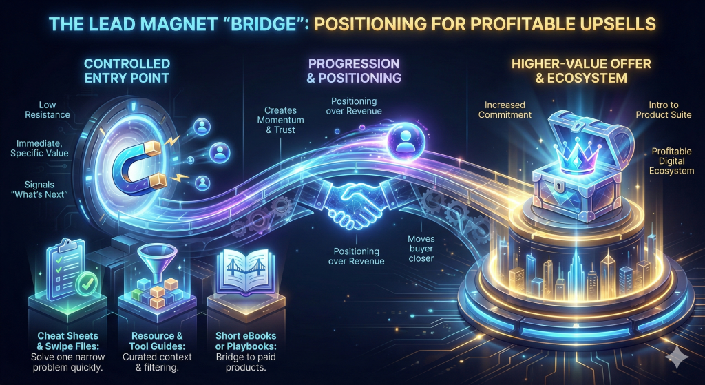 Lead magnets are often underestimated because they are low-cost or free, but they play a critical role in profitable digital product ecosystems. Their primary function is not revenue, it is positioning and progression. A well-designed lead magnet moves the buyer closer to a higher-value offer.