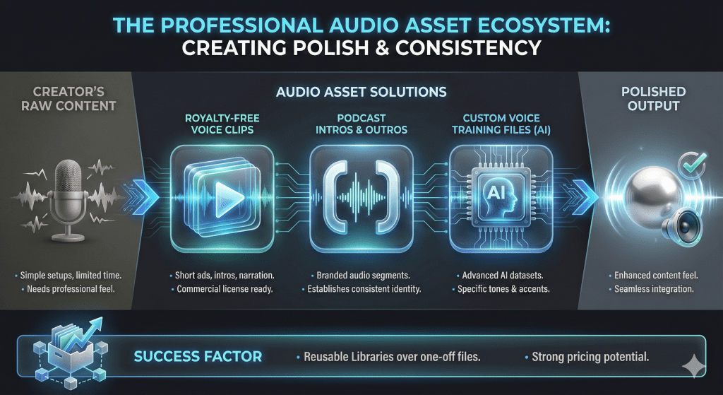 These products sell because they provide polish and consistency. A well-made audio asset improves how content feels, even when the creator’s setup is simple.