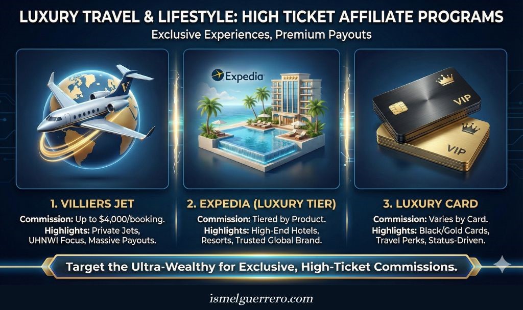 • Luxury hotel memberships: Promoting concierge travel clubs or luxury hotel loyalty programs can lead to commissions on five-star bookings.