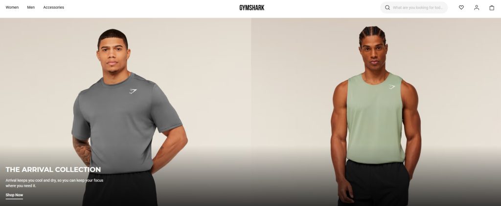 Gymshark builds landing pages around lifestyle identity. Product imagery shows real people in motion, reinforcing the brand’s positioning. Urgency elements, such as limited drops or low-stock indicators, add subtle pressure without aggressive language.