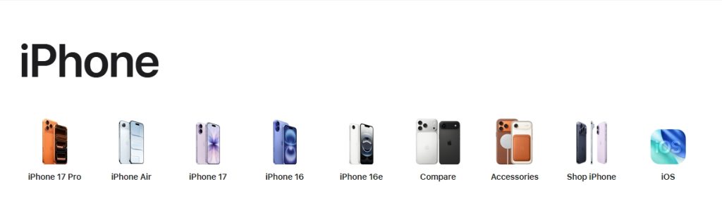 Apple designs product landing pages with extreme focus. A single product, such as an iPhone or MacBook, receives full visual attention. The headline is short and benefit-driven, often emphasizing performance or innovation in simple language.