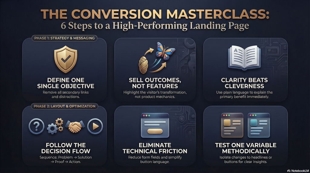 An effective landing page converts because it reduces confusion. It answers the visitor’s core question quickly: “Is this for me, and what happens if I act?” Every element on the page should support that decision.