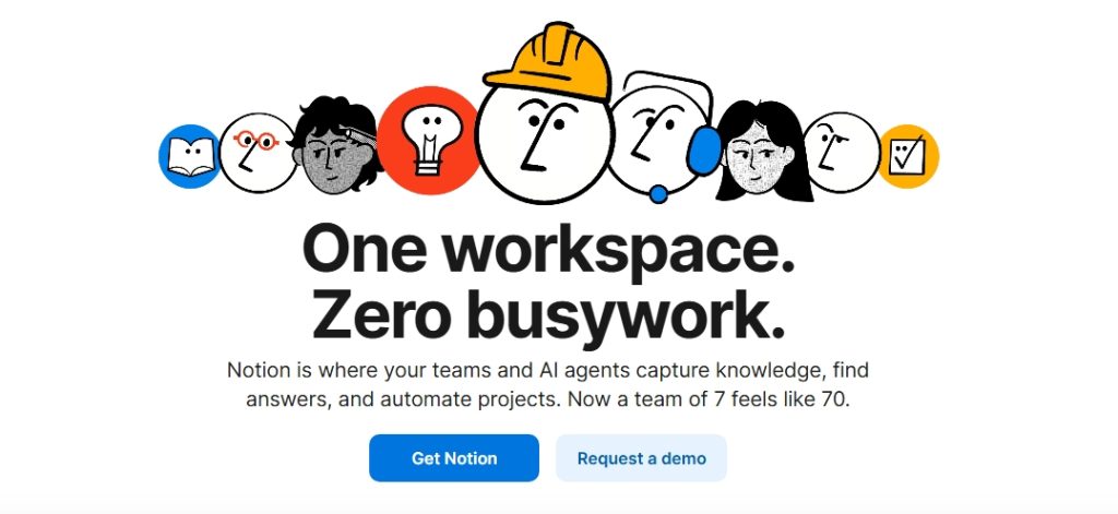Notion uses simplicity as a differentiator. The layout feels clean and minimal, which mirrors the product experience. Messaging emphasizes flexibility and customization, appealing to both individuals and teams.