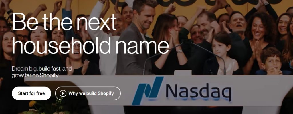 Shopify structures its landing page around empowerment. The headline speaks directly to entrepreneurs who want to start or grow a business. Instead of listing technical tools first, the page frames the platform as a pathway to ownership and independence.