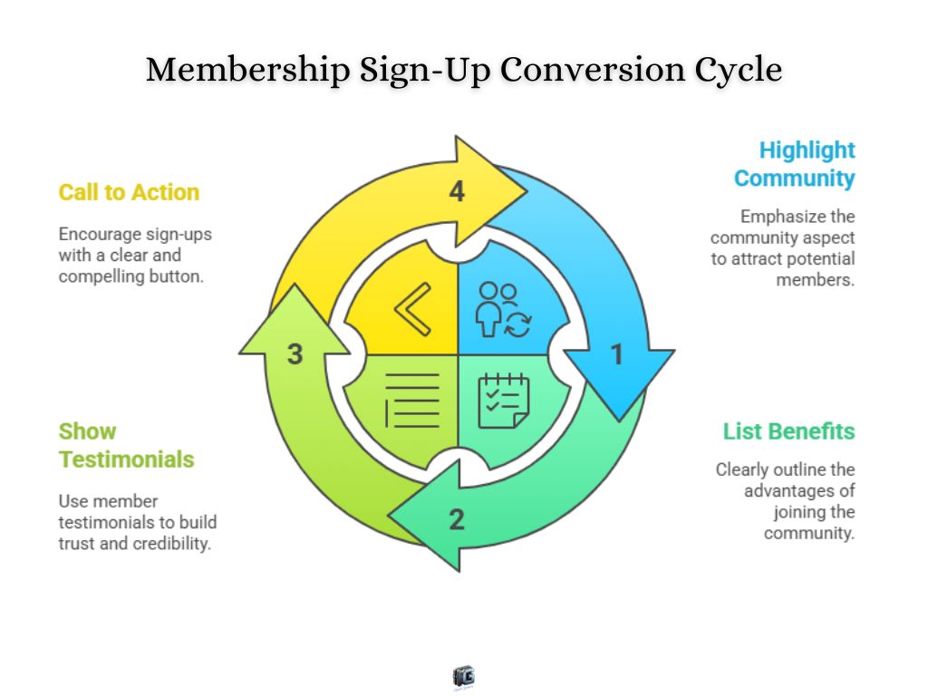 • Why it converts: community + exclusivity creates fear of missing out. Testimonials add proof that it’s worth joining.