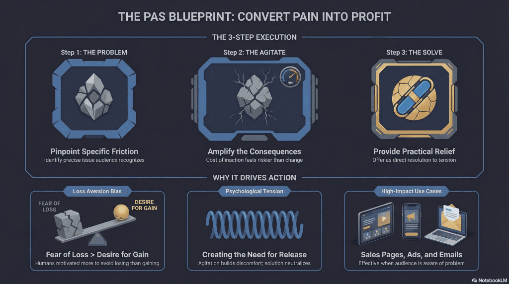 The PAS copywriting framework works because it follows a natural psychological progression.