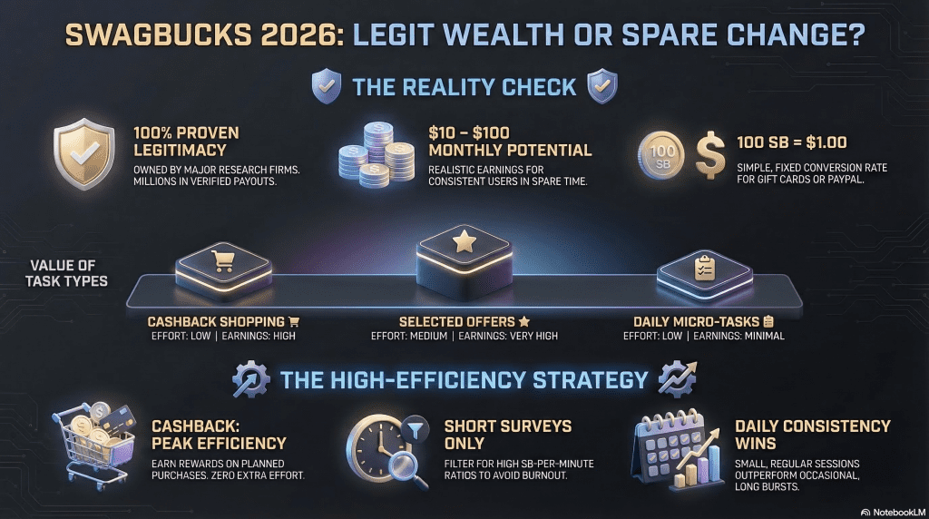 Swagbucks can help you earn small amounts of extra money. But it comes with limits. The payouts are low. The best methods are not always obvious. And most people overestimate what they will earn.