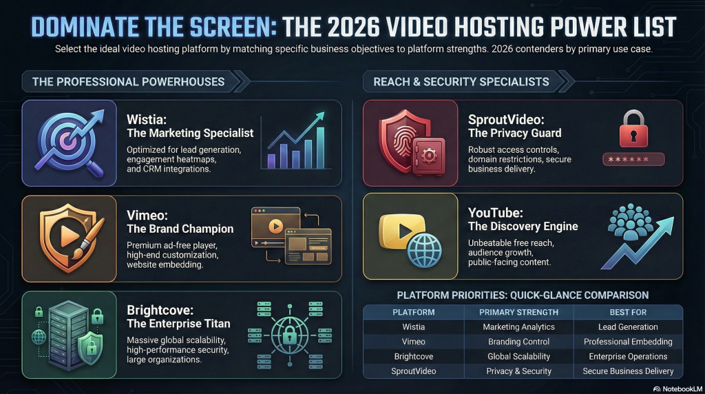 The best video hosting sites in 2026 are not interchangeable. Each platform is built around a different priority, whether that is branding control, marketing analytics, enterprise scalability, or public reach.