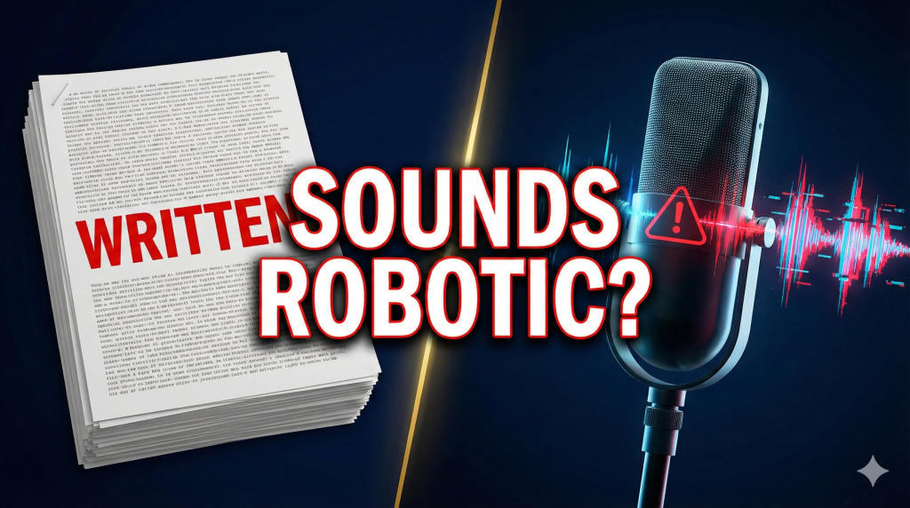 AI voice overs often sound unnatural for a simple reason, they are generated from scripts that were never written to be spoken. Listeners notice flat tone, awkward pacing, or misplaced emphasis, even when the voice itself is technically advanced.