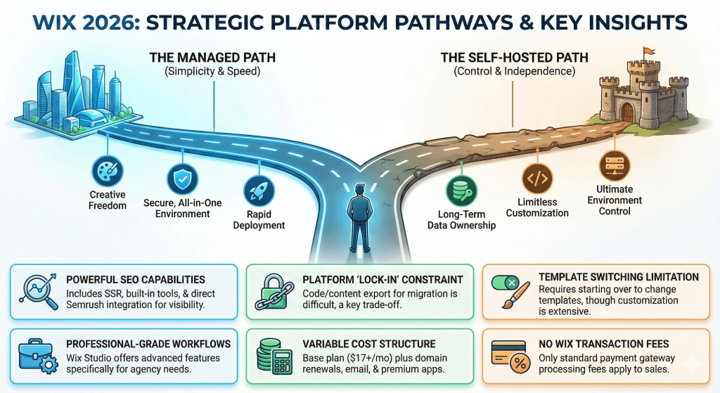- The “Walled Garden” Lock-In: The single most significant structural constraint of Wix is the inability to export your site’s data or code, making migration a difficult and costly process, estimated to take 12-20 hours for even a modest 30-page site.
