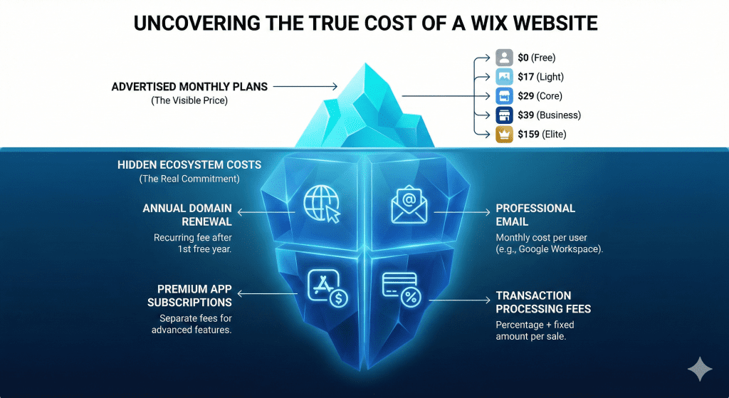 The subscription fee is only part of the story. Users should budget for several additional costs that are common within the Wix ecosystem: