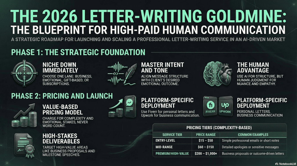 - Start simple: choose one type of letter, one platform, and one clear offer. Build experience before expanding.